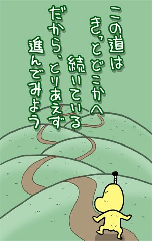 たぶん、どこかへ続いてる・・・ この道を進めば、きっとどこかへ辿り着ける。 そう思って、ふらふらと歩いております。 そう思わないと、やってられないし。 #絵日記