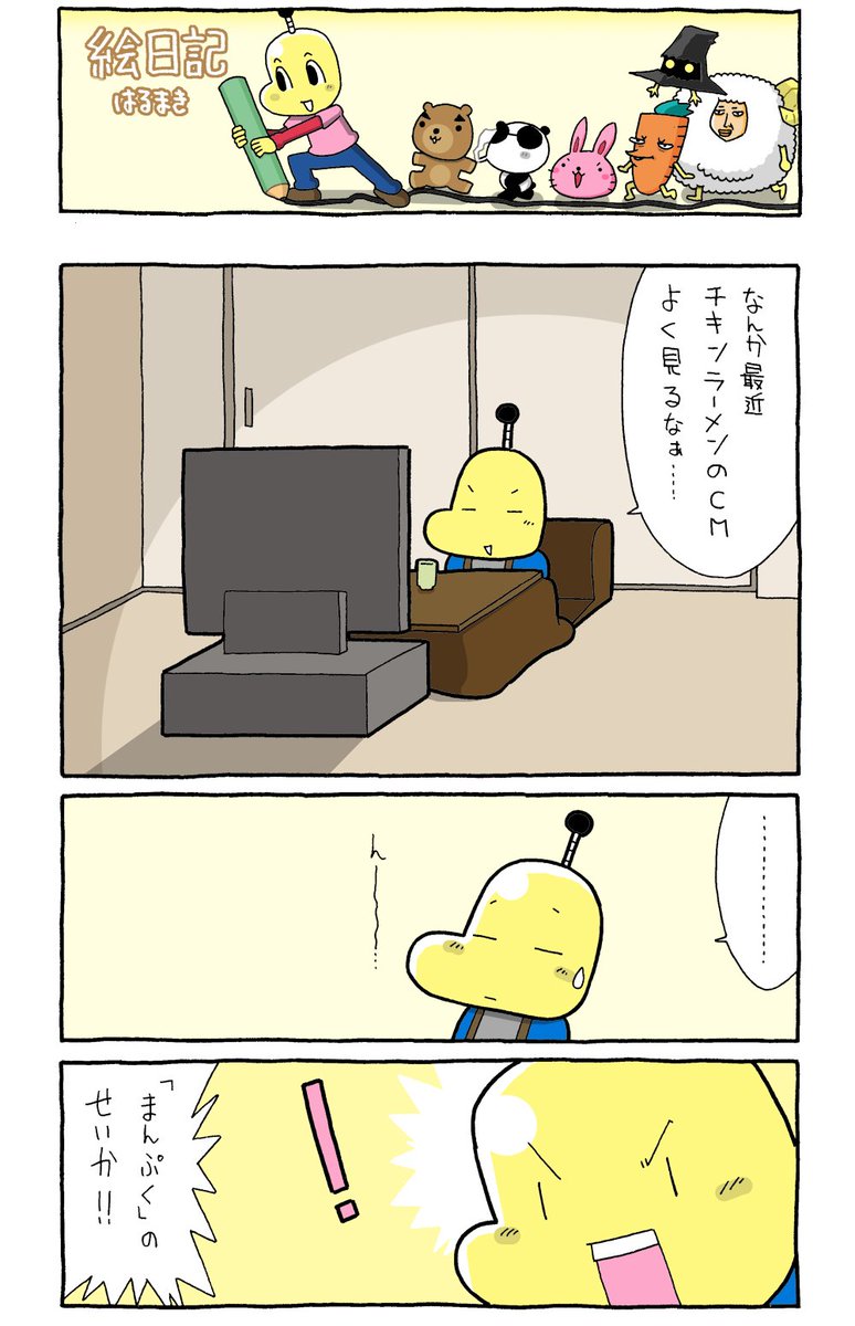 最近チキンラーメンのCMを良く見るなぁ・・・ 「まんぷく」のせいか!! と、今頃気がついた。 #絵日記