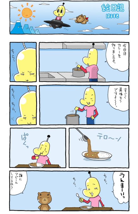 せっかく料理したんだからと、 人に自慢したくなる。 たかだかカレーだけれども。 #絵日記