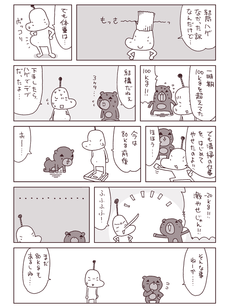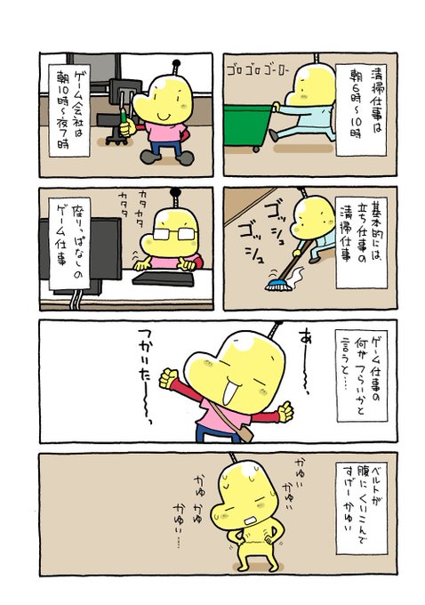 掃除仕事時代は体重減らないなぁ・・・と思ってたけど、 ゲーム会社に行ったら、順調に太り始めた・・・ 減らない事よりも、増えない事が重要だったんだな・・・ と、思った晩夏の頃。 #絵日記