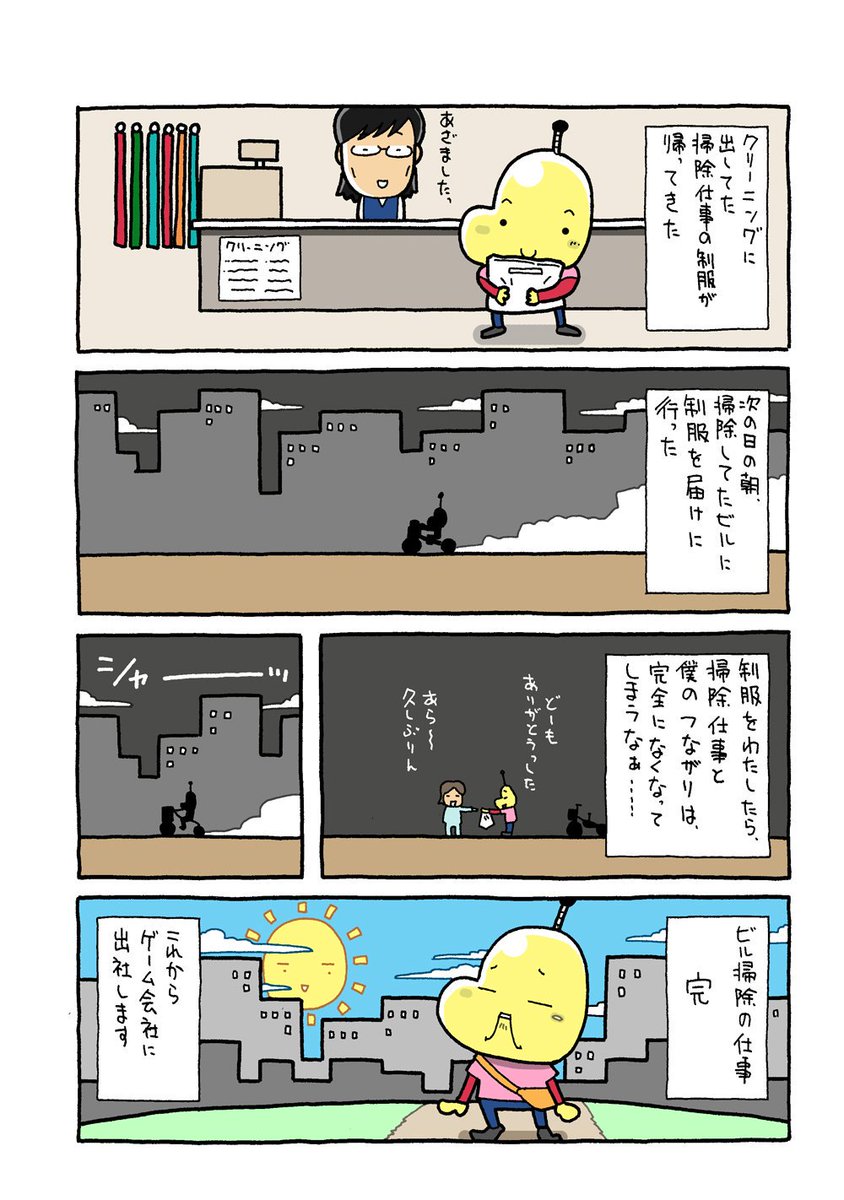クリーニングに出してた掃除仕事の制服を返しに行って これで本当に掃除仕事は終わりなんだなー・・・ その後、ゲーム会社へ #絵日記