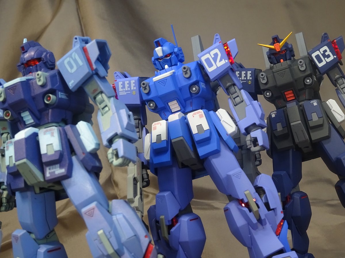 #Twitter模型祭 HG連邦系量産機の作品です。 ジムカスは過去作の中でも1、2を争うぐらいお気に入りなので何度も出してすみませんです。 あとブルーデスティニーを量産機に含むかは議論が分かれますかね・・・。 #ガンプラ