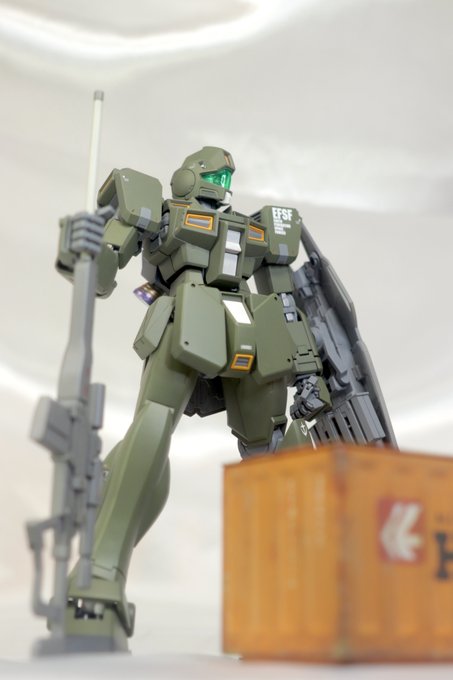 #HGオリジン 3連作、最後は #ジムスナイパーカスタム です。 こちらも基本的にはストレート組みですが、頭頂部のちょんまげアンテナがあまり好きではなかったのでアンテナ位置を変更したのとシステムウェポンのライフル、ガンダムのショルダーキャノンを装備させました。 続く #ガンプラ