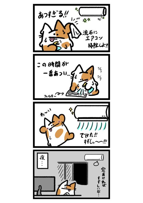 1 4 これは6月くらいに描いた漫画 (今はもうエアコンないと死ぬ😌) #イラスト #暑い 22/07/17 17:18