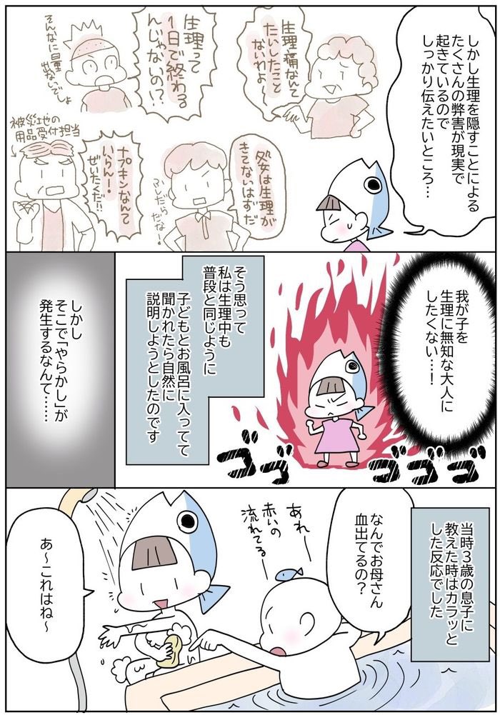 前回の漫画の続きのような追加の漫画を4枚描きました 「なんで生理について隠す?」 について明確な答えを持っている方は是非ご意見ください 男女ともに 生理は個人差がある 経血量が大体こんな感じで必要な生理用品はどれぐらいか 生理による弊害とその対策 について知っていて欲しいですね twitter.com/wopocco/status…