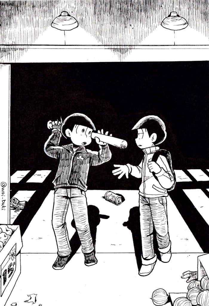 ペン松りありがとうございました〜 今回連作だったのでいつもよりたくさん描けた(当社比)! 期間中徐々に状況が悪化しているため、モブがいなくなったり降りた駅の電光掲示板が消えていたりゾンビが増えたりしてるので、見返してみると楽しいかも? #春のペン松り #春のペン松り2022