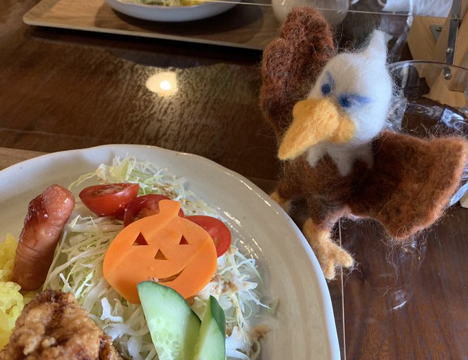 今日も妻に感謝。いただきます! #サラメシ #トロフィー部長 #ワールドイーグル #羊毛フェルト