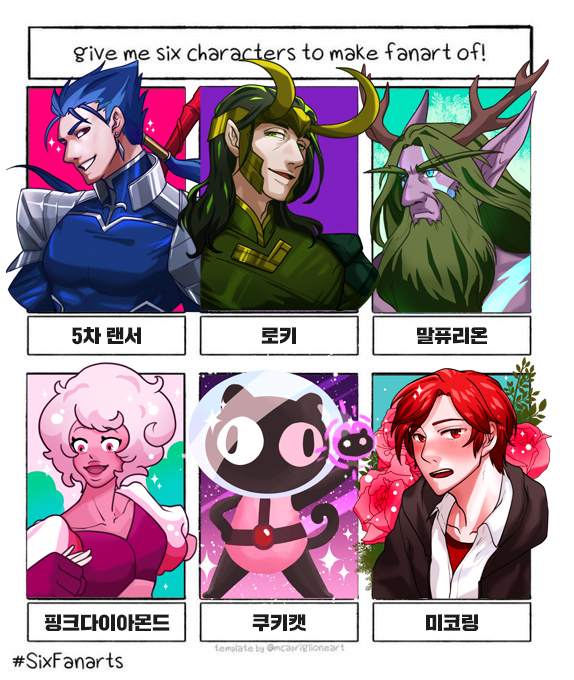 드디어 해왔다 5차랜서 로키 말퓨리온 핑다 쿠키캣 미코링 가져왔습니당 #SixFanarts