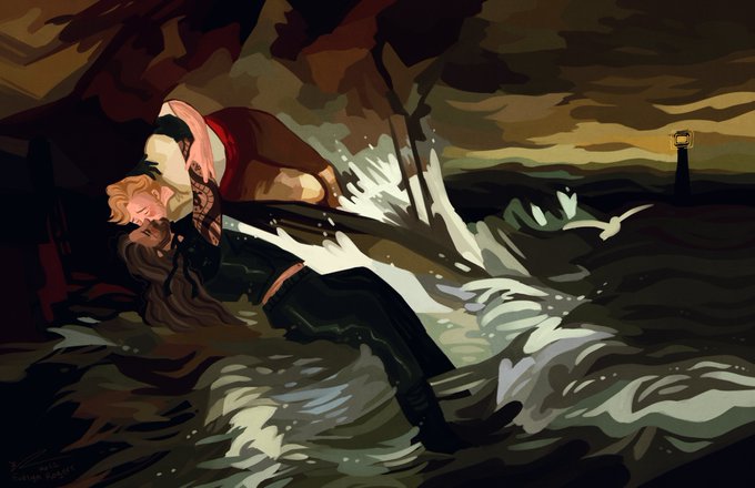 at last i can post my piece for the @Nova_Mali "As A Crew" Charity Artbook - this painting was inspired by Gustav Wertheimer's "Kiss of the Siren" #OurFlagMeansDeath