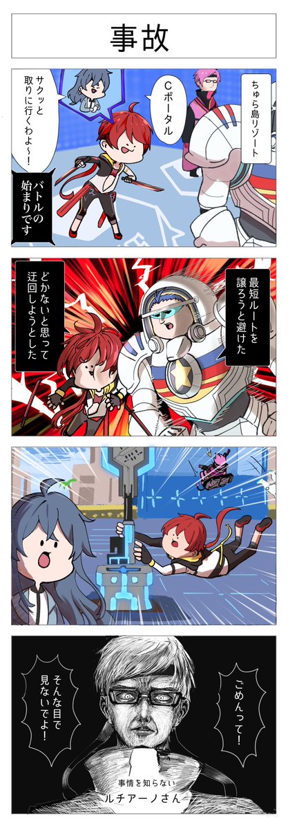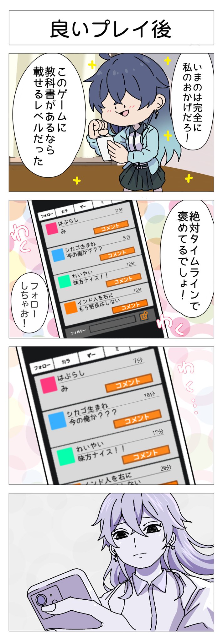 【#4コマ漫画 】 「良いプレーをした後、味方をフォローして褒められてるかチェックする」 ...同志います? 絵:れんたろう(@mechacoquelico ) ■他の作品は公式HPで wpl-colorless.com ※この漫画はWPLが独自で制作しており#コンパス 運営チームは関与していません
