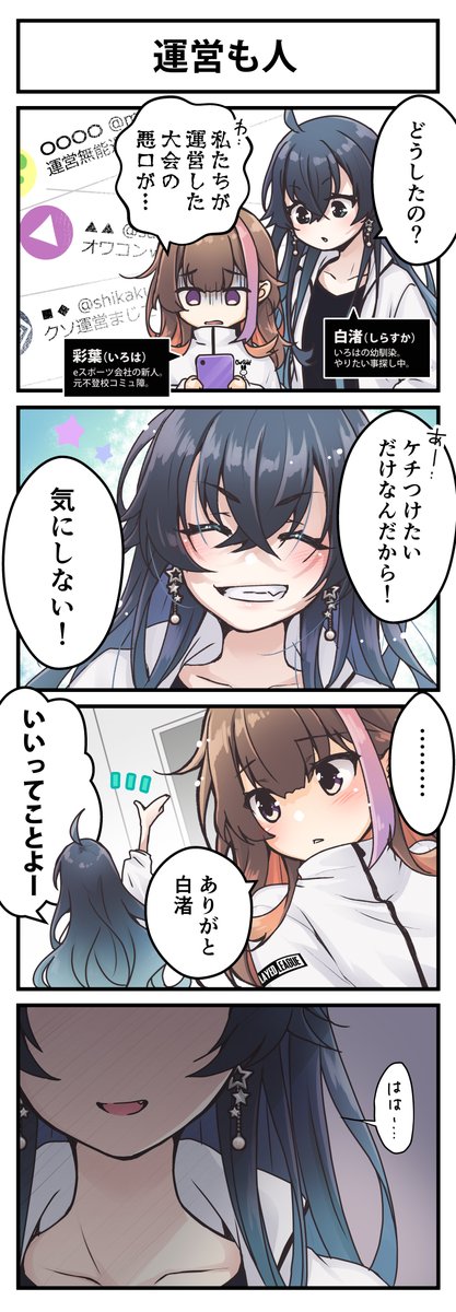 【#4コマ漫画 】 大会運営も中身は人。 いつも明るい彼女も... 絵:u*ri(@uriuriuri_n ) ■他の作品は公式HPで wpl-colorless.com #漫画が読めるハッシュタグ