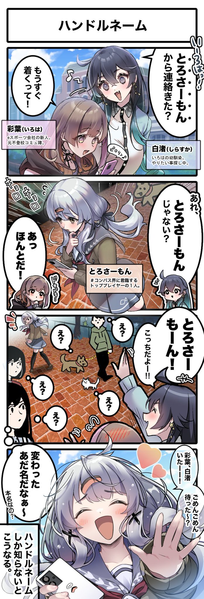 【#4コマ漫画 】 ハンドルネームやニックネームが定着している。 街中で大きな声で呼ぶ。 変に目立つ。 ...あると思います。 絵:みやこん部長(@konbu_now ) 友情出演:とろさーもん(@torotoro2932 ) ■他の作品は公式HPで wpl-colorless.com #漫画が読めるハッシュタグ