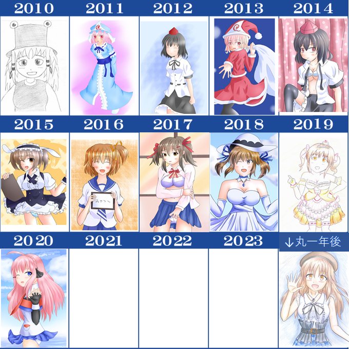 1年進化録 & 11年進化録 #進化録 #パンツ #アイドルマスターシンデレラガールズ #アズールレーン #東方 #色鉛筆 #sai #十時愛梨 #イラスト pixiv.net/artworks/86210…
