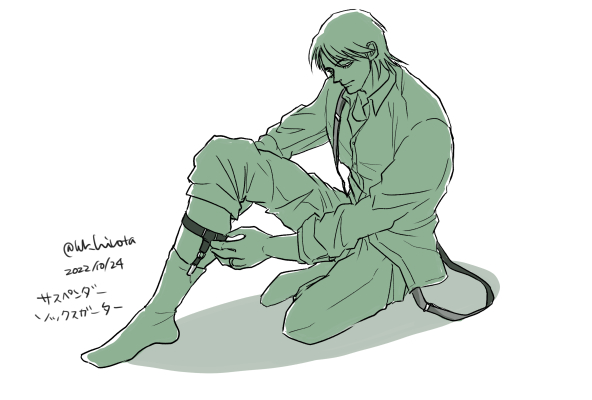 2 16 #創作男子版深夜の真剣お絵描き60分一本勝負 遅刻参加「ソックスガーター」「サスペンダー」 22/10/24 00:26