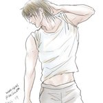 #創作男子版深夜の真剣お絵描き60分一本勝負 遅刻参加 「汗」「腹チラ」