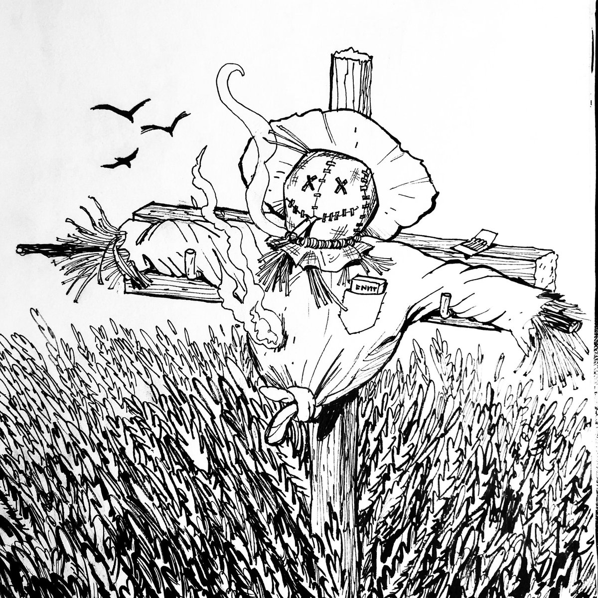 Inktober #8: Match. -Ryan O’Connor #inktober #inktober2022 #match #scarecrow