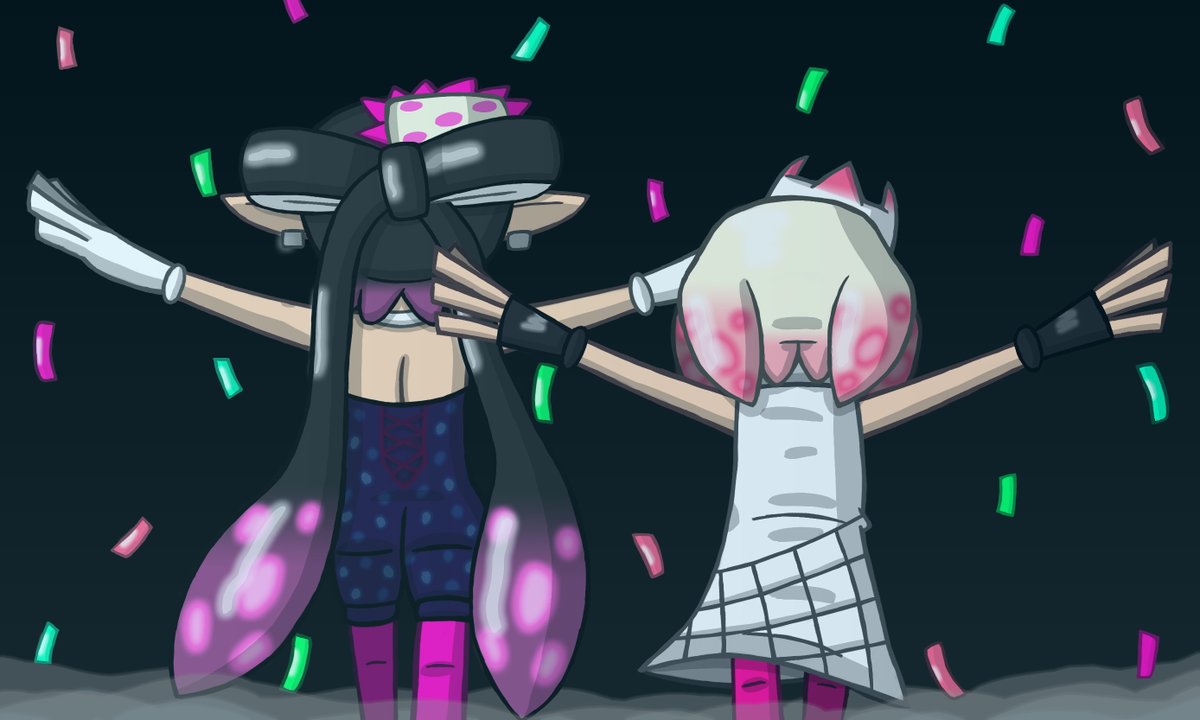 Pearl and Callie's legendary exit from the last #Splatoon concert. [made in 2019] #splatoonart #splatoonconcert #squidsisters #offthehook #Nintendo #nintendofanart #gaming #videogames #gamefanart #digitalart