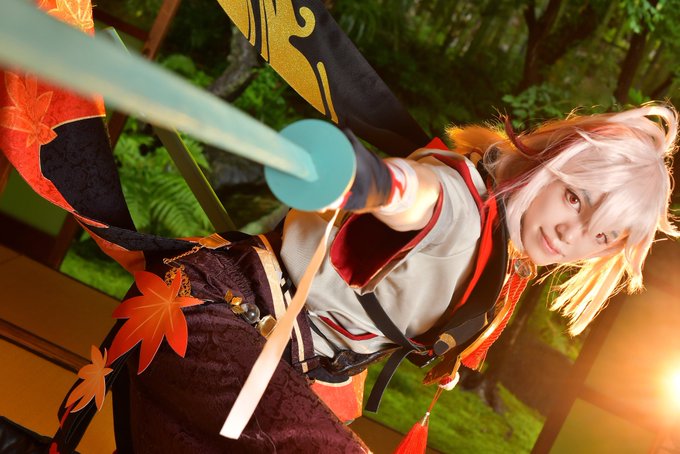 【コスネーム】れんち。 【作品名】原神 【キャラクター名】楓原万葉 【一言】稲妻の秘境での戦闘を想定し、ロケ地、ポージング、ひらみ、カラーフィルターを用いたライティングをカメラマンさんと試行錯誤しました。 Photo:@Baka_to_love #コスモスナップ09 #コスモスナップ #COSPLAYMODE