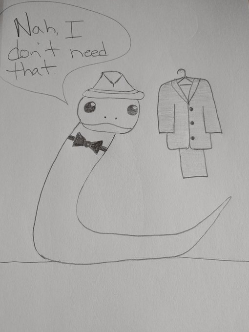 Continued silly sneks. Today's theme is "suit." I learned I don't know how to draw fedoras at all. #Inktober #Inktober2021 #inktober2021day2