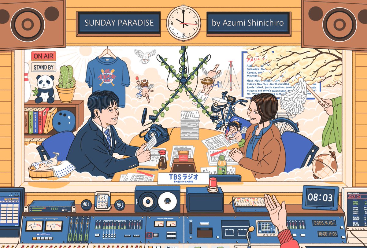 \ TBSラジオ 安住紳一郎の日曜天国 / ㊗️放送900回記念の番組ポストカードを描かせて頂きました!🎊 今日の放送がその900回目でした📻 そんな貴重な機会に関わる事が出来て本当に光栄です。安住さん中澤さん、スタッフの皆さん、そしてリスナーの皆さまおめでとうございます🐼⛩🐦 #nichiten