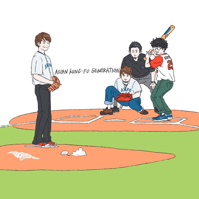 アジカン結成27周年おめでとうございます!㊗️🎉🎸 結成25周年の時に描いたイラストです⚾️ #AKG27th
