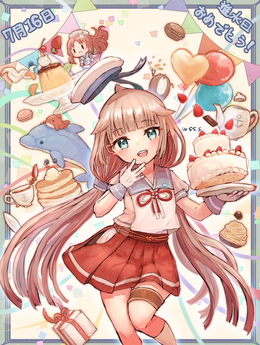 進水日とのことなので、以前描いたぬいぬい🎂 ハッピー進水日ー🎉🎉🎉 #艦これ