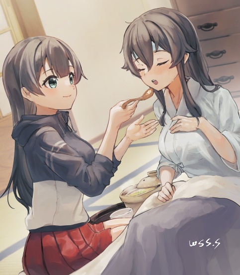 夏風邪矢矧にお粥あーんする阿賀野ねぇ🤒(Skeb) お大事に〜🛌 #艦これ