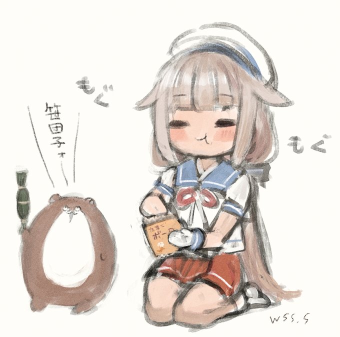 もぐもぐおやつタイム御蔵ちゃんとボクカワウソ😋 #艦これ