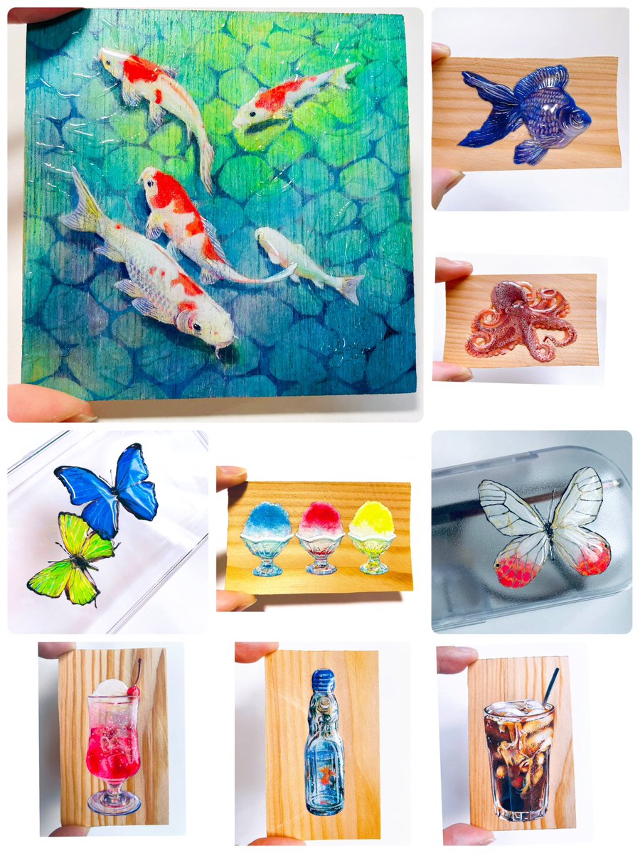 #今月描いた絵を晒そう 背景描いちゃうと木の良さが消える? もっと薄く? うーん🤔 試作金魚