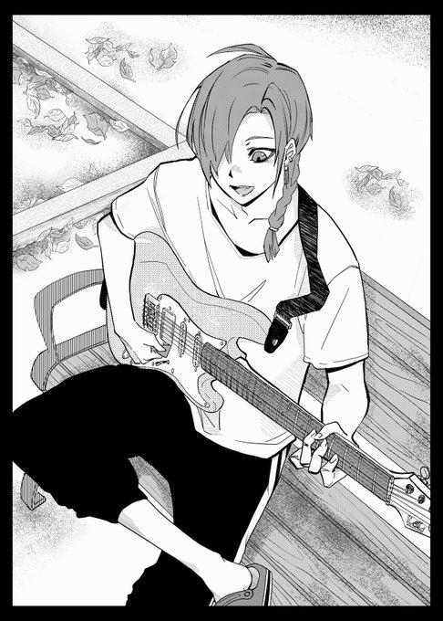 「緑仙には天気のいい日に雑な部屋着のまま近くの公園のベンチで呑気にギターの練習して欲しいよね」という個人的な願望。 #緑仙はやく見ろ