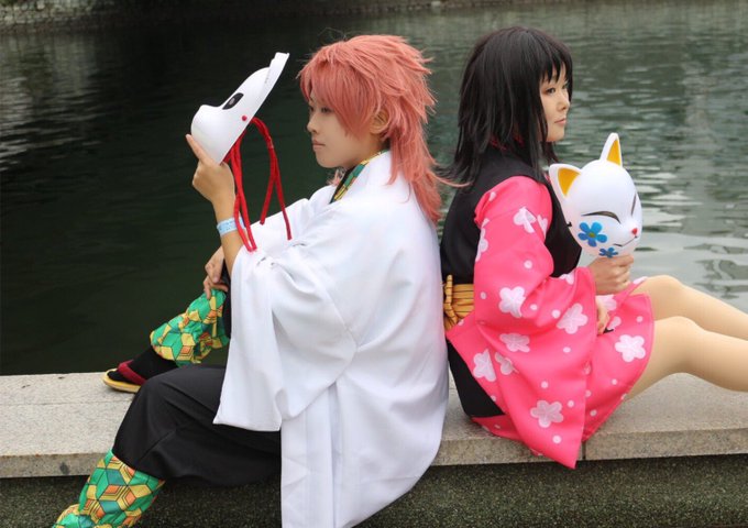 2 11 #まちあそび 真菰:七味 錆兎:くろさん@kurobeozisan Photo:瑚奈さん@c0o4s 素敵に撮って頂きました〜(●︎´□︎`●︎)))嬉✨ ありがとうございました‼️😊 20/02/18 22:36