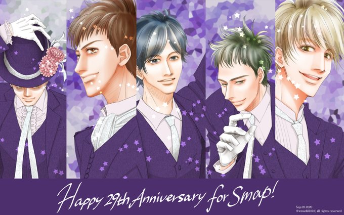 *****SMAPデビュー29周年おめでとう!ありがとう!! 久々にカッコイイやつ観たいなぁーとおもって描きました。 だいすき!来年もお祝いするね!! #SMAP #SMAP29YEARS #SMAP29回目誕生祭_0909