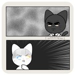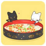 12 56 今日はカレーうどんの日。 カレーの飛び跳ね注意‼️ #白猫さんと黒猫さん #ゆるいイラスト 23/08/02 22:00