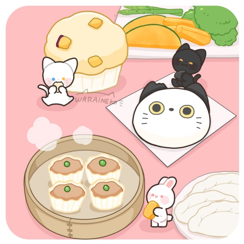今日は蒸し料理の日 蒸しパンの日。 #猫イラスト #ゆるいイラスト