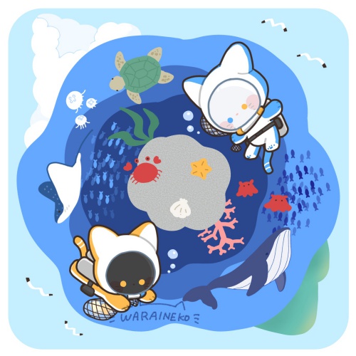 今日は世界海洋デー🌊。 #猫イラスト #ゆるいイラスト