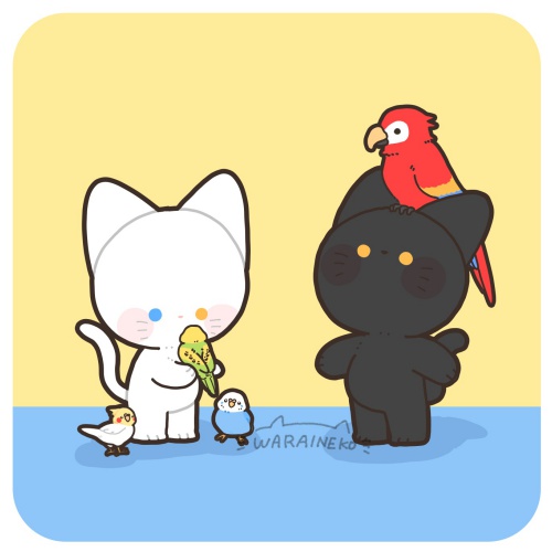 今日はオウムとインコの日🦜。 #猫イラスト #ゆるいイラスト
