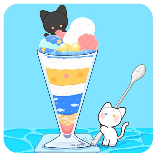 7 28 今日はパフェの日。 #猫イラスト #ゆるいイラスト 23/06/28 22:00