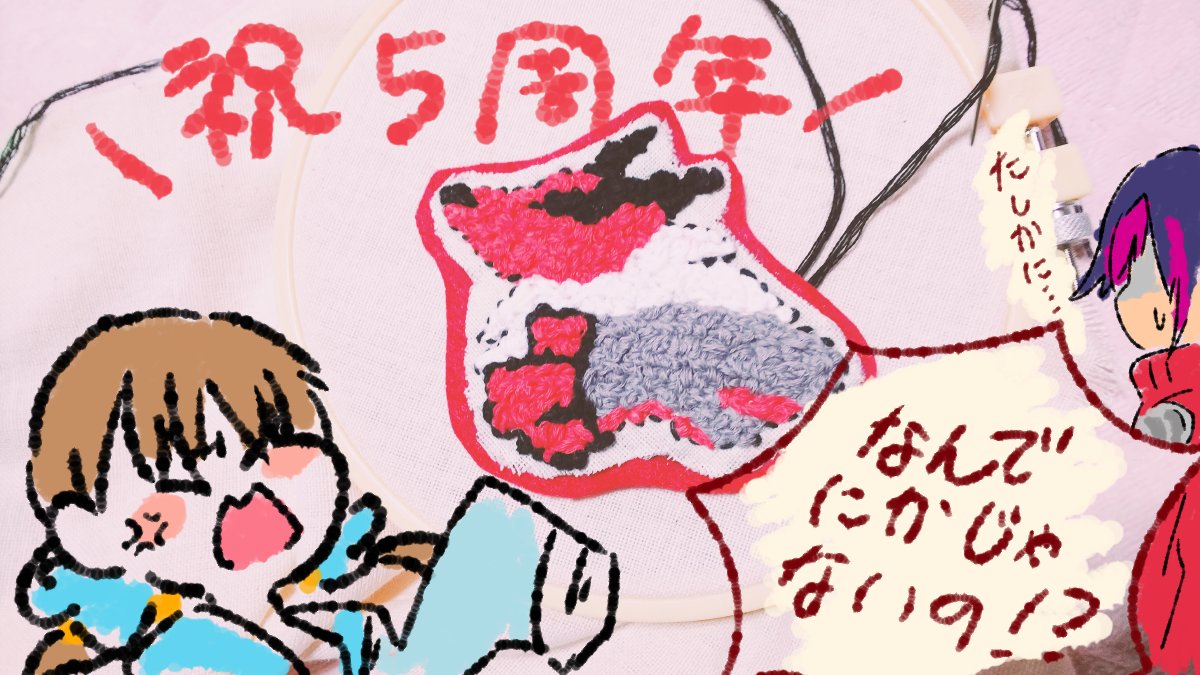 遅れちゃいましたが5周年おめおめ😹 #しんけん版深夜の真剣お絵描き60分一本勝負