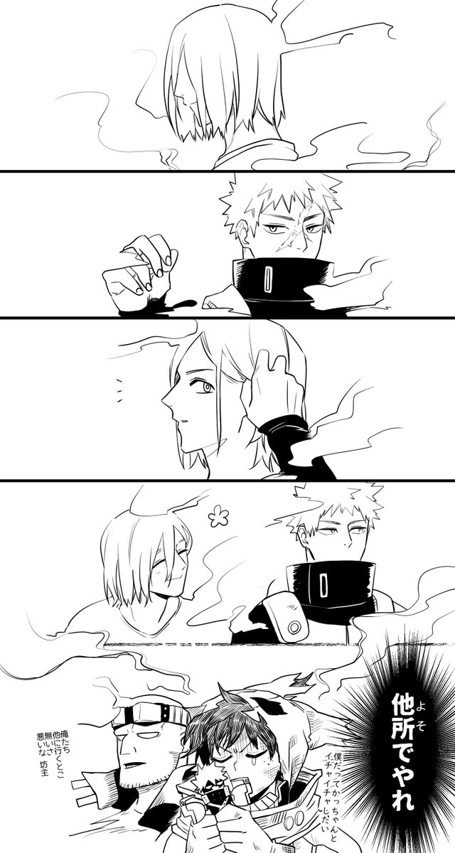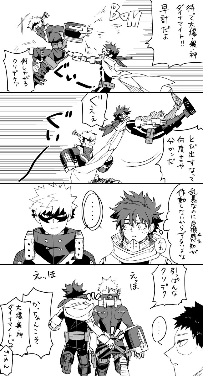 いつまでも強さへの憧れは持っている 同棲出勝 ケンカ腰になると口調が荒くなる出 ブツブツ言い出した勝 出は無個性のころから散々マイトさんや勝の真似をしただろうから 勝もね