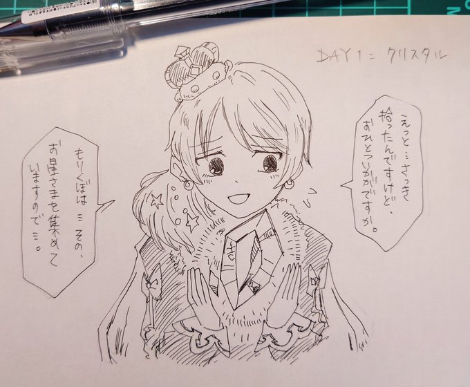 インクトーバー出遅れたけどやるよ! 二次創作縛りでやる…はず! day1.クリスタル スターピースという結晶の欠片をくれるおとぎ話もりくぼ。 画材 ハイテック0.25ミリ #inktober #inktober2021