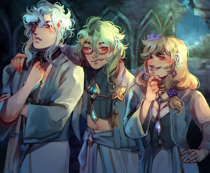akademiya students on their way to make some bad life decisions in the name of knowledge #GenshinImpact #Dottore #baizhu #lisa #genshinimpactfanart
