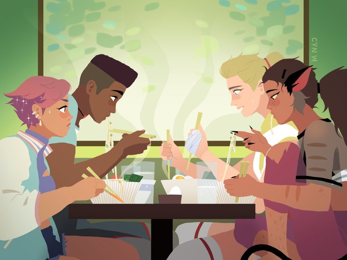 Glimmer: "Catra, I can get you a fork." Catra: "I'm good, Sparkles." Adora: "...I think I might need one." Bow: (learned from Glimmer years ago) Best Friends Squad vs Chopsticks (ft. cute summer outfits from that one Noelle fanart) #shera #sherafanart #spop #spopfanart