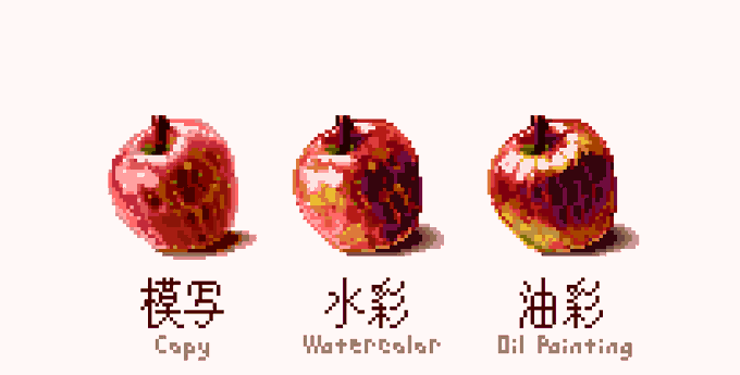 水彩風ドット、油彩風ドット #ドット絵 #pixelart