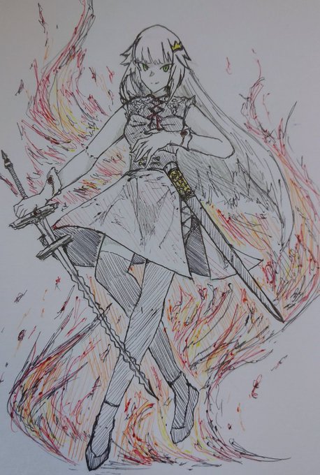 7 25 フランベルジュ × 時雨ミトさん 『死よりも苦痛を与える剣』とも呼ばれる波うった刃の剣。語源は炎を現すフランス語『フランブワン』からとされる。波うつ刃で切り裂かれると止血が難しく、破傷風などを引き起こすとされる。 #時雨煮アート #時雨ミト 22/03/31 08:54