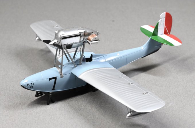 118 472 Macchi M33完成。1925年のシュナイダートロフィーに出場した機体と言うより、あの赤い飛行艇の元ネタと言ったほうが通る。リベットルーラーで有名なSBS modelのレジンキット。この手の機体を組んだ人はちょっとヤなかんじの形状でも最近のレジンはストレスフリーで組めますね。 22/05/08 23:28