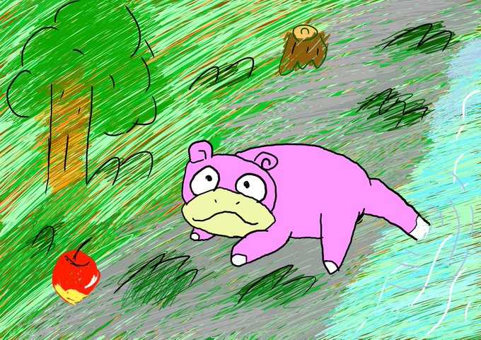 ポケモンスナップ風のヤドン描いた #イラスト #ポケモン