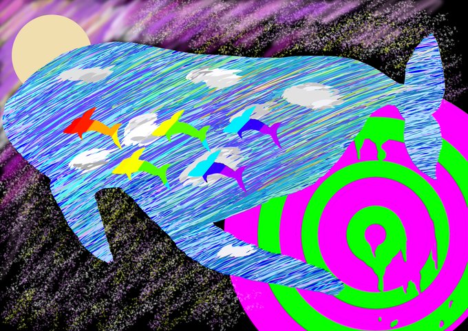 1 5 空のクジラを泳ぐ虹のイルカ #イラスト 22/08/22 18:57