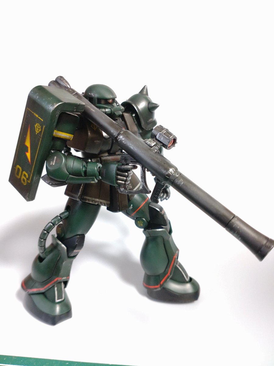 HGUC リアルタイプザク完成!素組み→トップコート→ウオッシング→ドライブラシの工程で組んでいます。デカールが欠けたりしたけど逆にリアリティが出てイイ感じ👍 #ガンプラ #ガンプラ好きと繋がりたい #ガンプラの画像貼るとRTされると聞いて