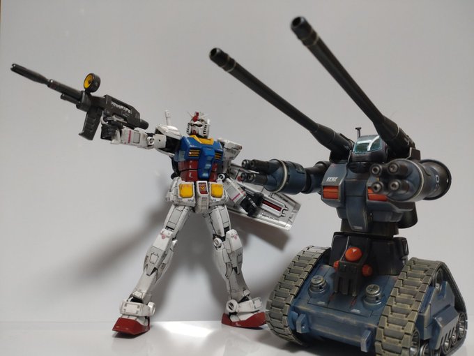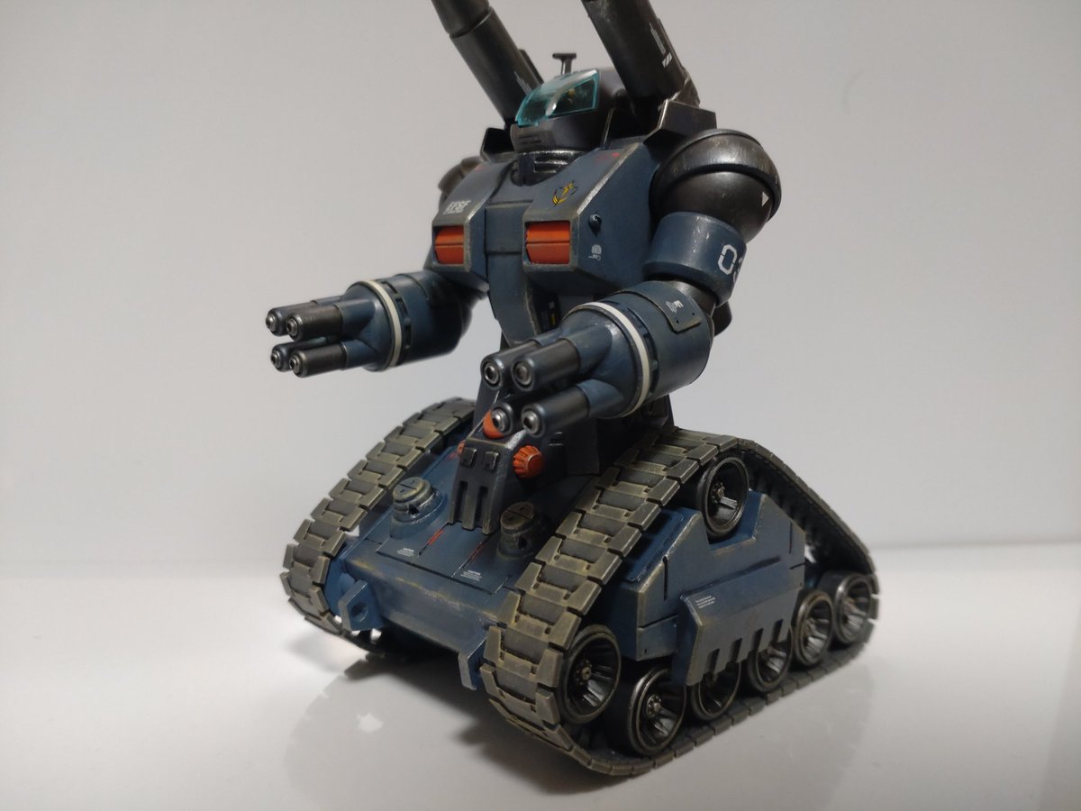 HGガンタンク完成! ファレホでの筆塗りとディティールアップ。つや消し→ウェザリング→つや消しで仕上げ。 ワンポイントのオレンジがお気入り。 #ガンプラ #ガンプラ好きと繋がりたい #ガンプラの画像貼るとRTされると聞いて
