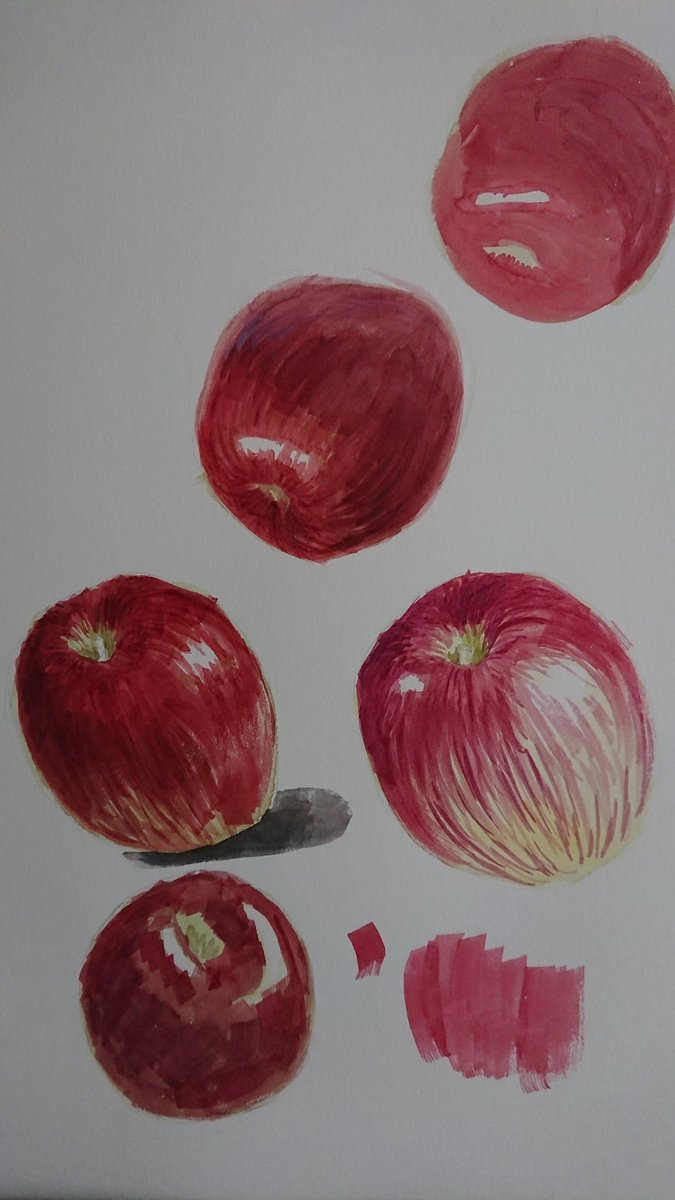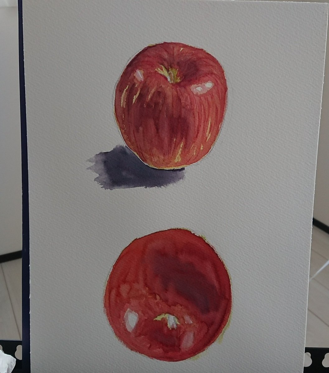 数えきれないほどリンゴを描いて今日は一番うまくかけた? アドバイスください #水彩 #初心者 #ヴィフアール